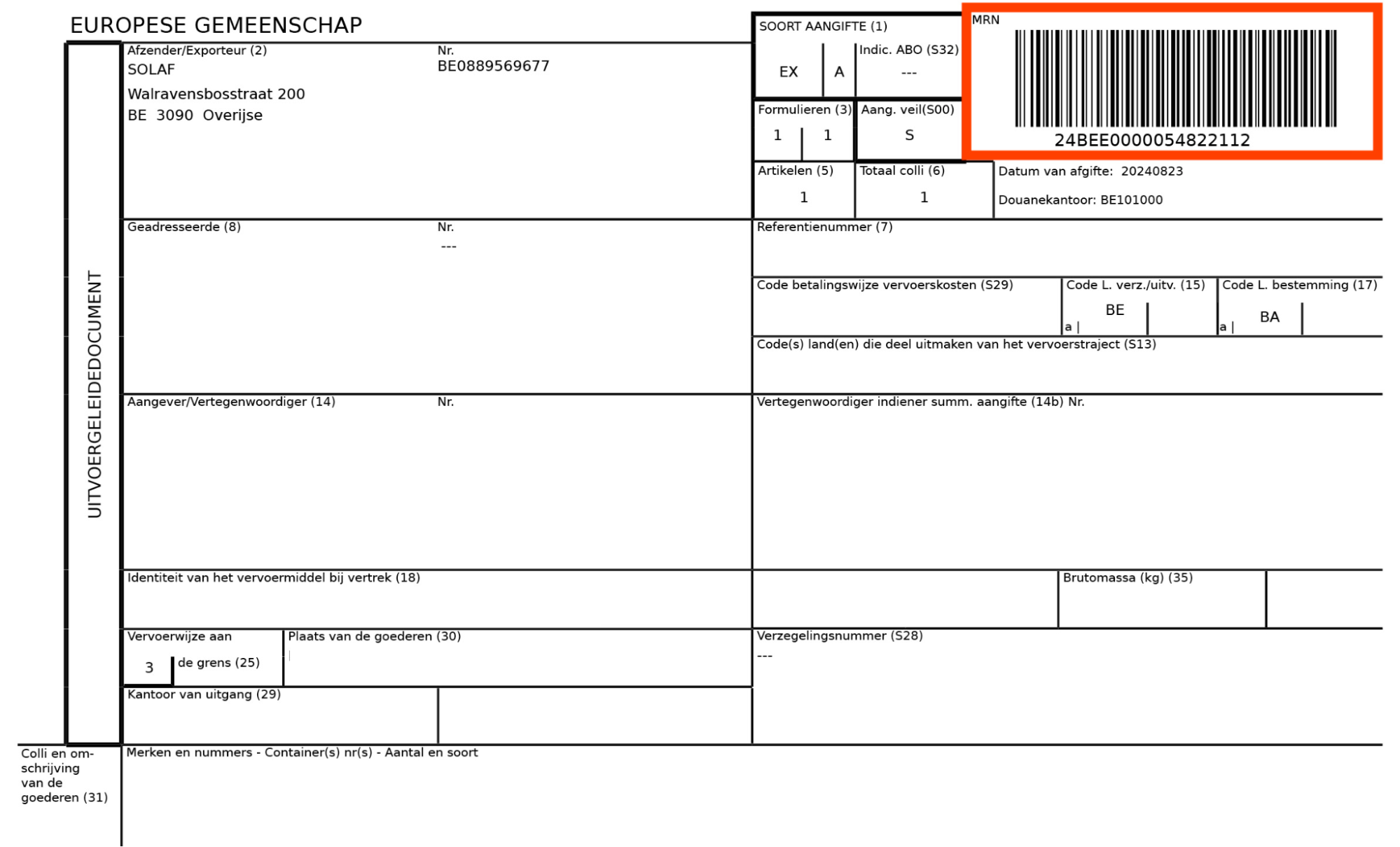 EX-A ihracat beyannamesi, bir aracın Avrupa Birliği dışına ihraç edildiğini gösteren resmi bir AB gümrük belgesidir.